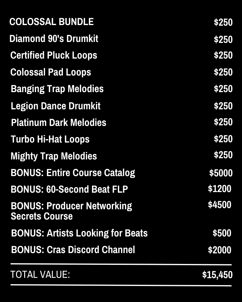 Cras' discord is filled with like-minded producers who are on the same goal as you. You can ask questions, post your beats, get beat feedback from Pro's, and join NEVER-BEFORE-SEEN member's only giveaways to explode your beat skills.